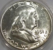 1951-P Gem Brilliant Uncirculated Franklin Half Dollar W-Full Bell Lines ( 320-A )1951-P Gem Brilliant Uncirculated Franklin Half Dollar W-Full Bell Lines ( 320-A )