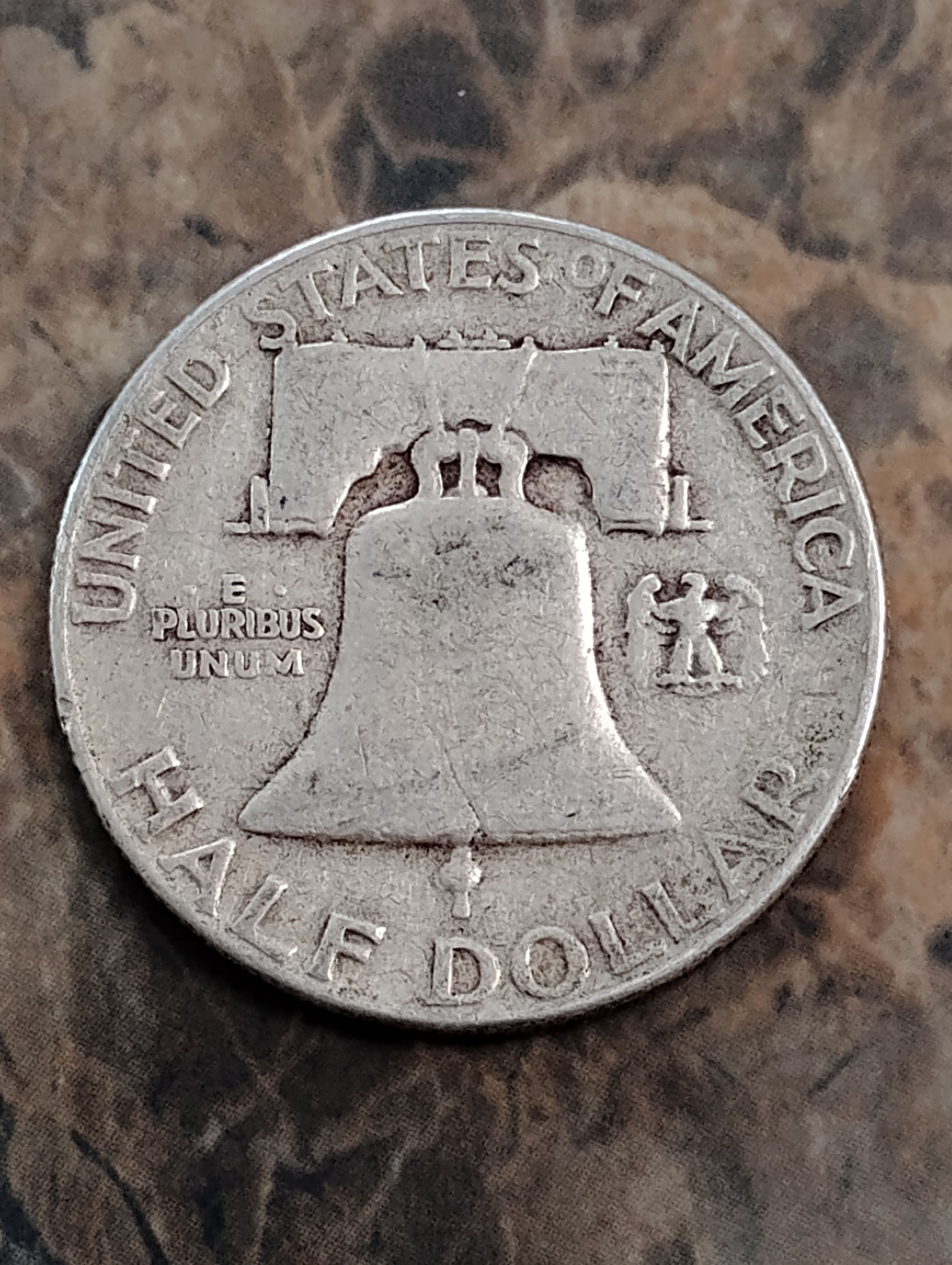 A 1954 Franklin Half Dollar (90% Silver) US Mint Coin in "Average Circulated" Condition.