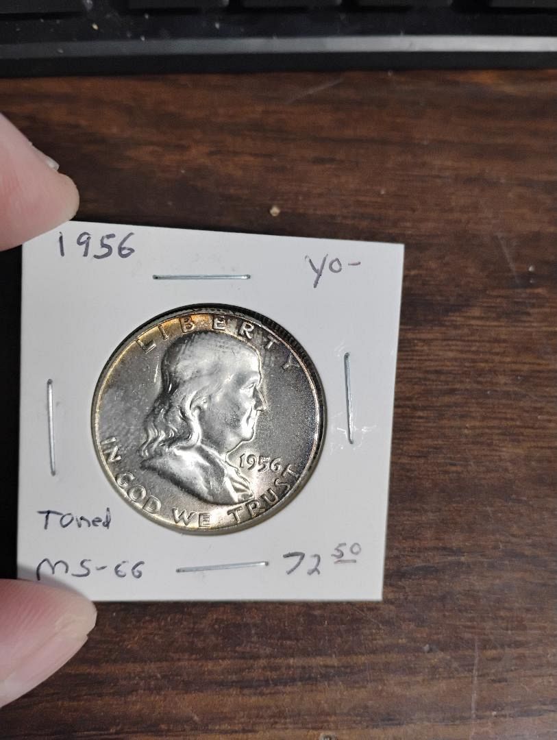 1956 BENJAMIN FRANKLIN HALF DOLLAR MS-66 TONED