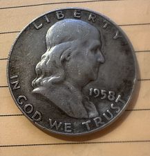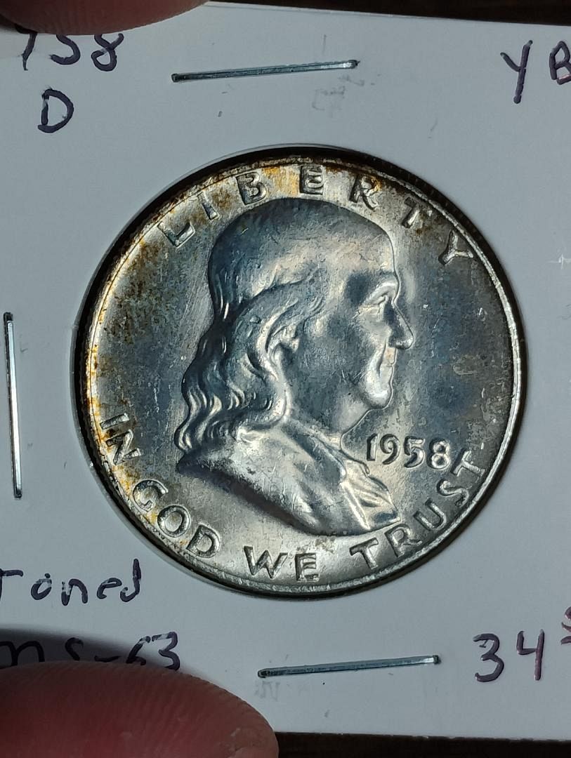1958-D BENJAMIN FRANKLIN HALF DOLLAR MS-63 , TONED