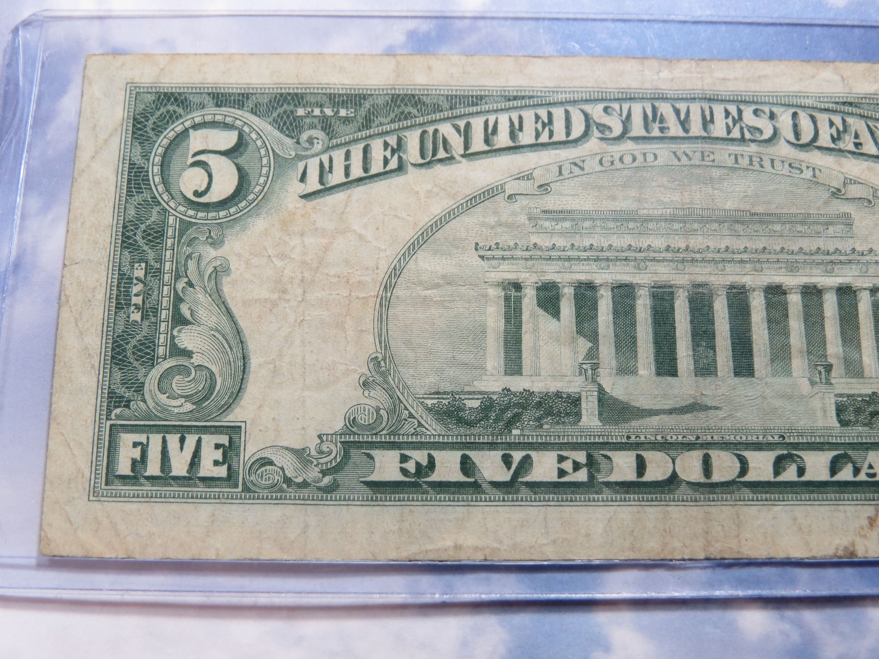 Check or Money OrderSeries of 1963 $5 Untied States Note - RED SEAL - Lot J488