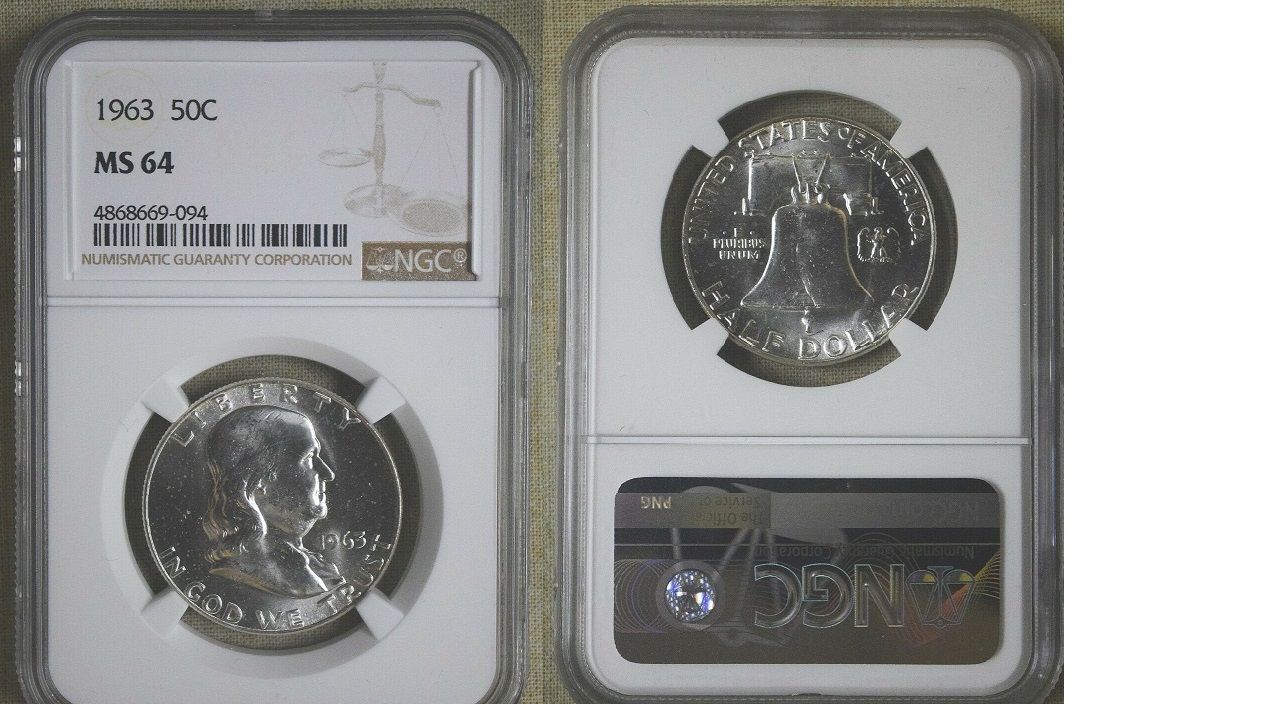 1963 FRANKLIN HALF DOLLAR - NGC CERTIFIED - MS 64