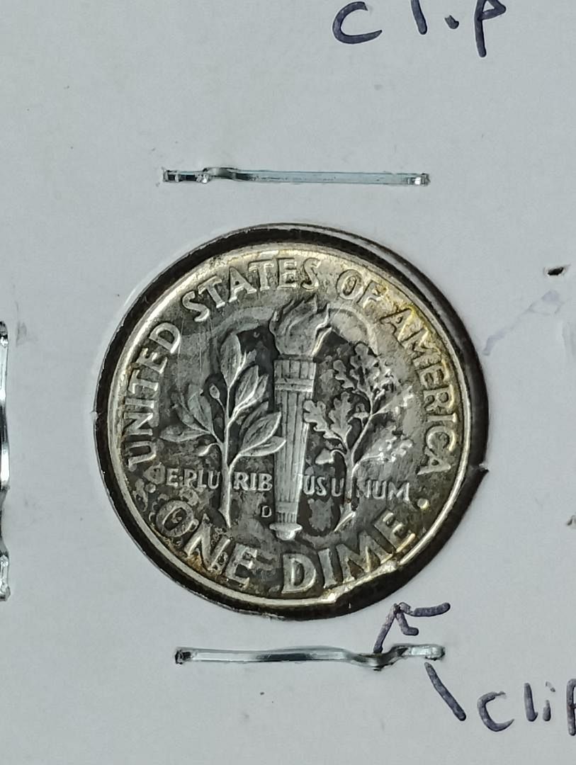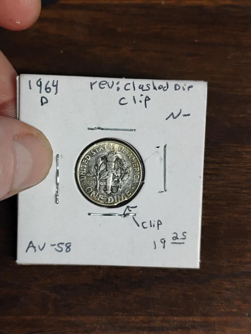1964-D ROOSEVELT DIME AU-58 CLASH ON OBVERSE, CLIP ERROR COIN 90% SILVER