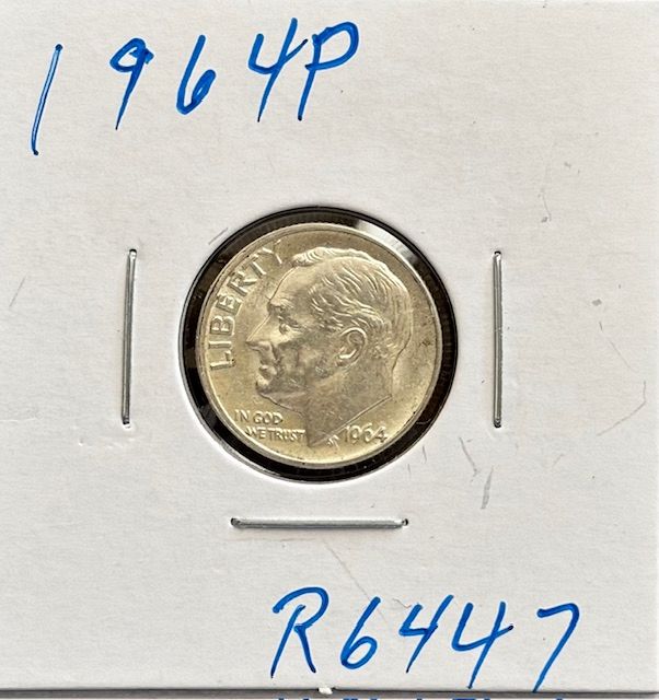 1964 P Roosevelt Dime. About Uncirculated R64471964 P Roosevelt Dime. About Uncirculated R64471964 P Roosevelt Dime. About Uncirculated R6447