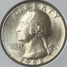 1968-D WASHINGTON QUARTER MS-65 , TONED