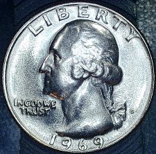 1969-D WASHINGTON QUARTER MS-65 , TONED