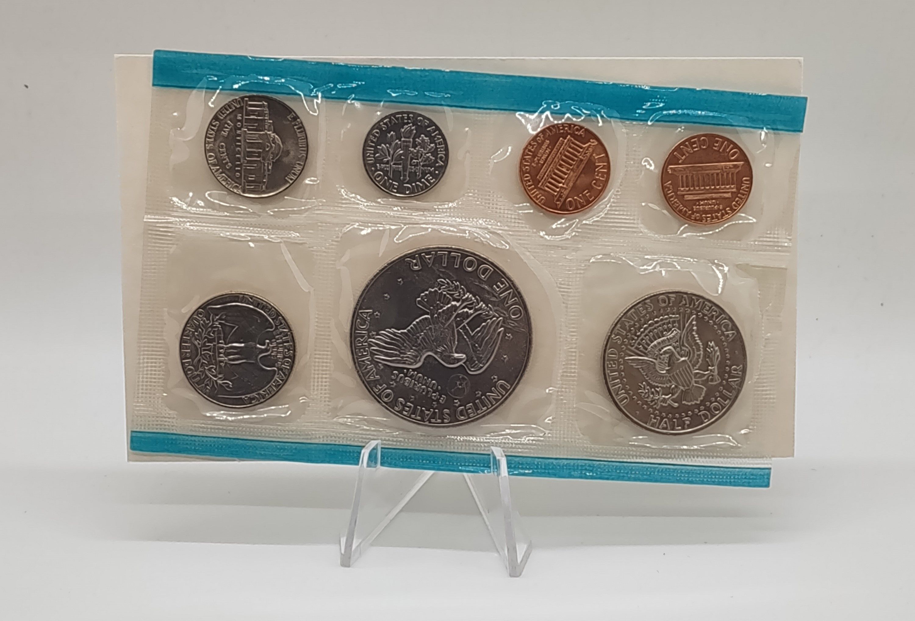 The 1973 Mint set includes 13 Uncirculated coins. The coins are sealed in two cellophane flat packs – One from the Denver mint and the other from the Philadelphia mint.