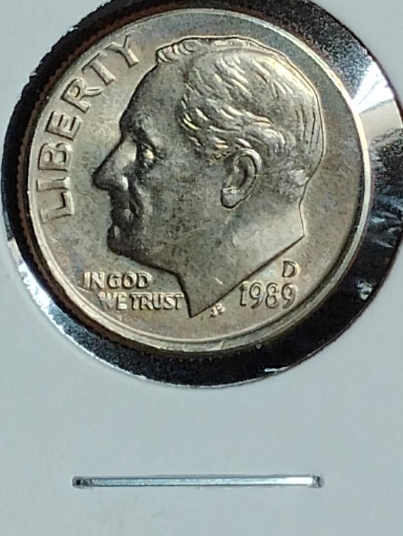 1989-D ROOSEVELT DIME STRUCK THROUGH REVERSE MS-62