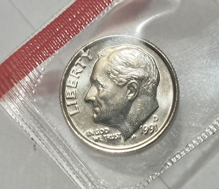 1991 D Roosevelt dime in orig US Mint cello1991 D Roosevelt dime in orig US Mint cello