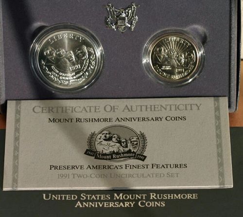 1991 US Mint Mt Rushmore 2 Coin Commemorative Set