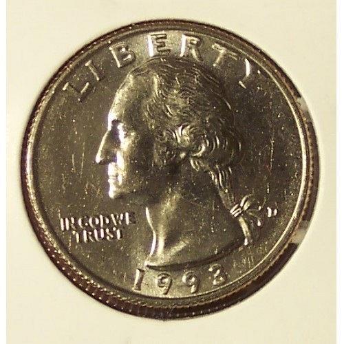 Up for sale, a 1993-D Washington Quarter that I would grade as MS65. This coin is fresh from a government mint set. The coin you see is the coin you will receive. No stock photos or switched out coins. I have a 7 day money back guarantee. I will combine shipping charges. Add an additional 15 cents for each additional coin. Orders totaling over $10 will be shipped FREE. All grading estimates are just that, estimates based on experience and a little help from Photograde. If the photos are not clear or you have any questions, please feel free to email me. Thanks for shopping at Grandpaw's Attic.