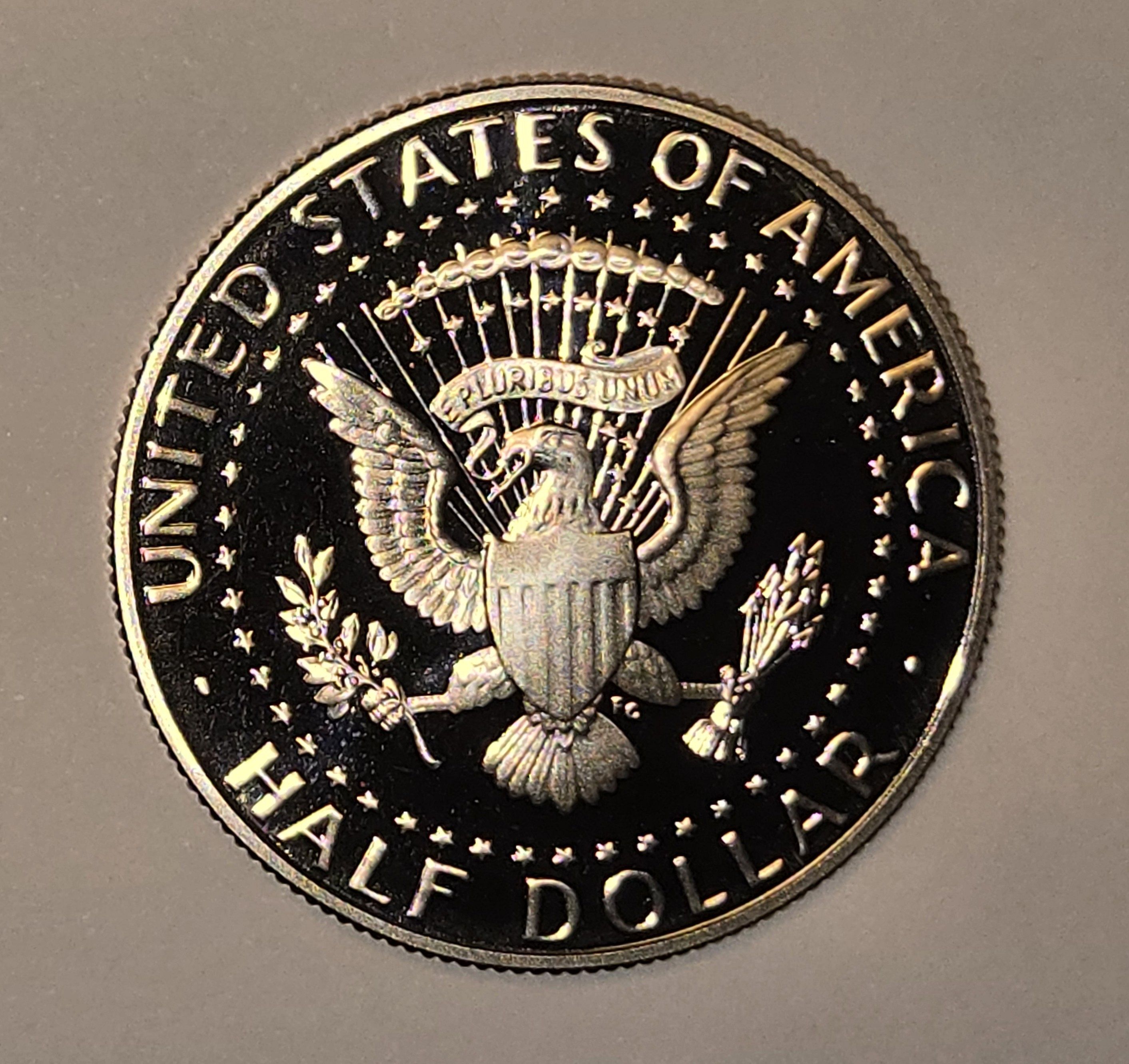 The first part 25c1981364 gives the denomination, date, mintmark code, and grade. The second part KZKTG KLGAdbK is my stock code. Any attribution such as a type designation (like TYPE 2 on 1979 or 1981 USA Proof Coins), speciality designation (like FSB on Mercury Dimes), error notation, OverMintMark (such as D OVER S for a 1955-D/S Jefferson Nickel), RPM (Repunched Mintmark), etc. will appear between the first and second parts. Take for example this 1952 PROOF SUPERBIRD PF-63 (Choice Proof) Washington Quarter I sold: