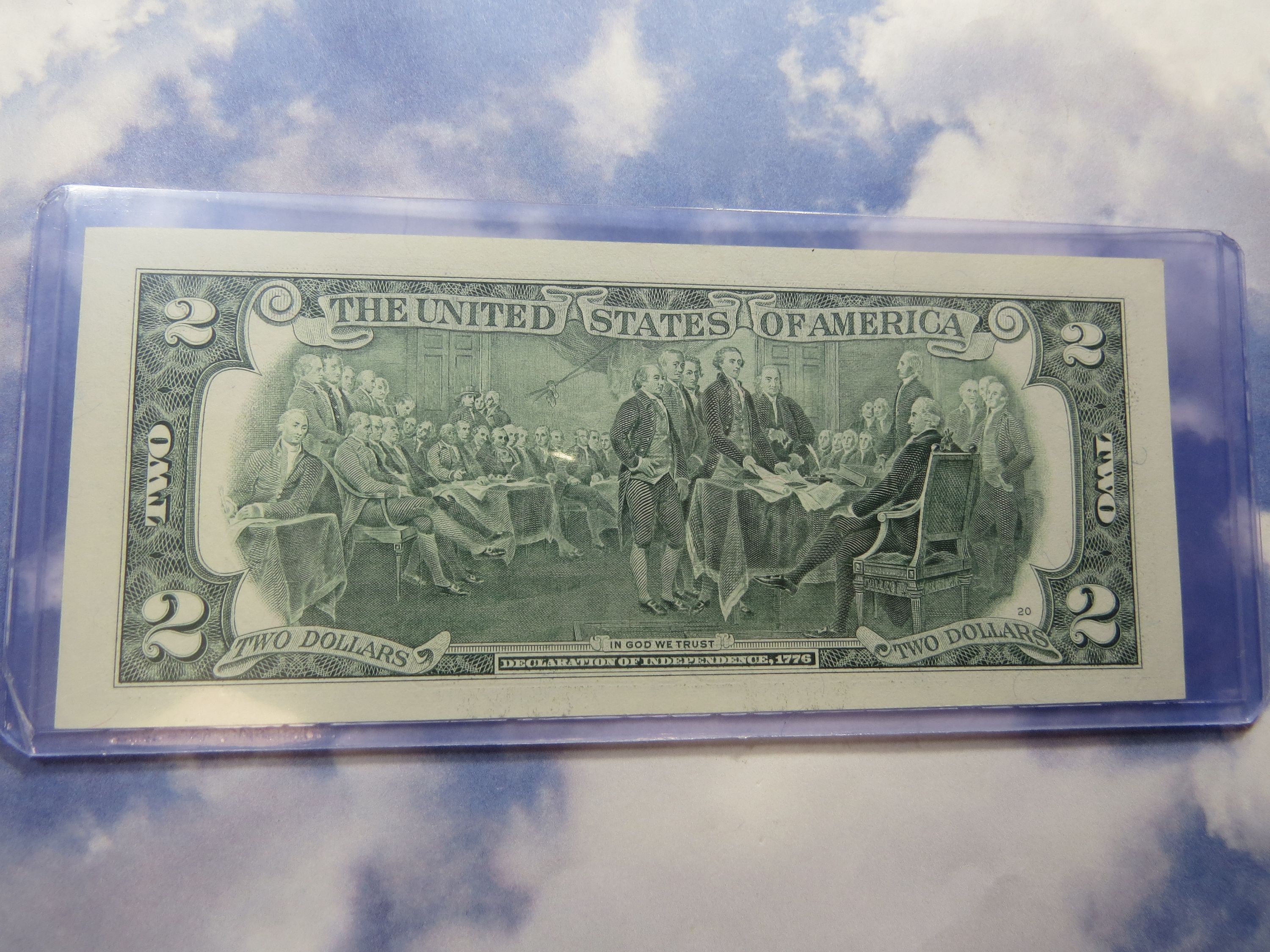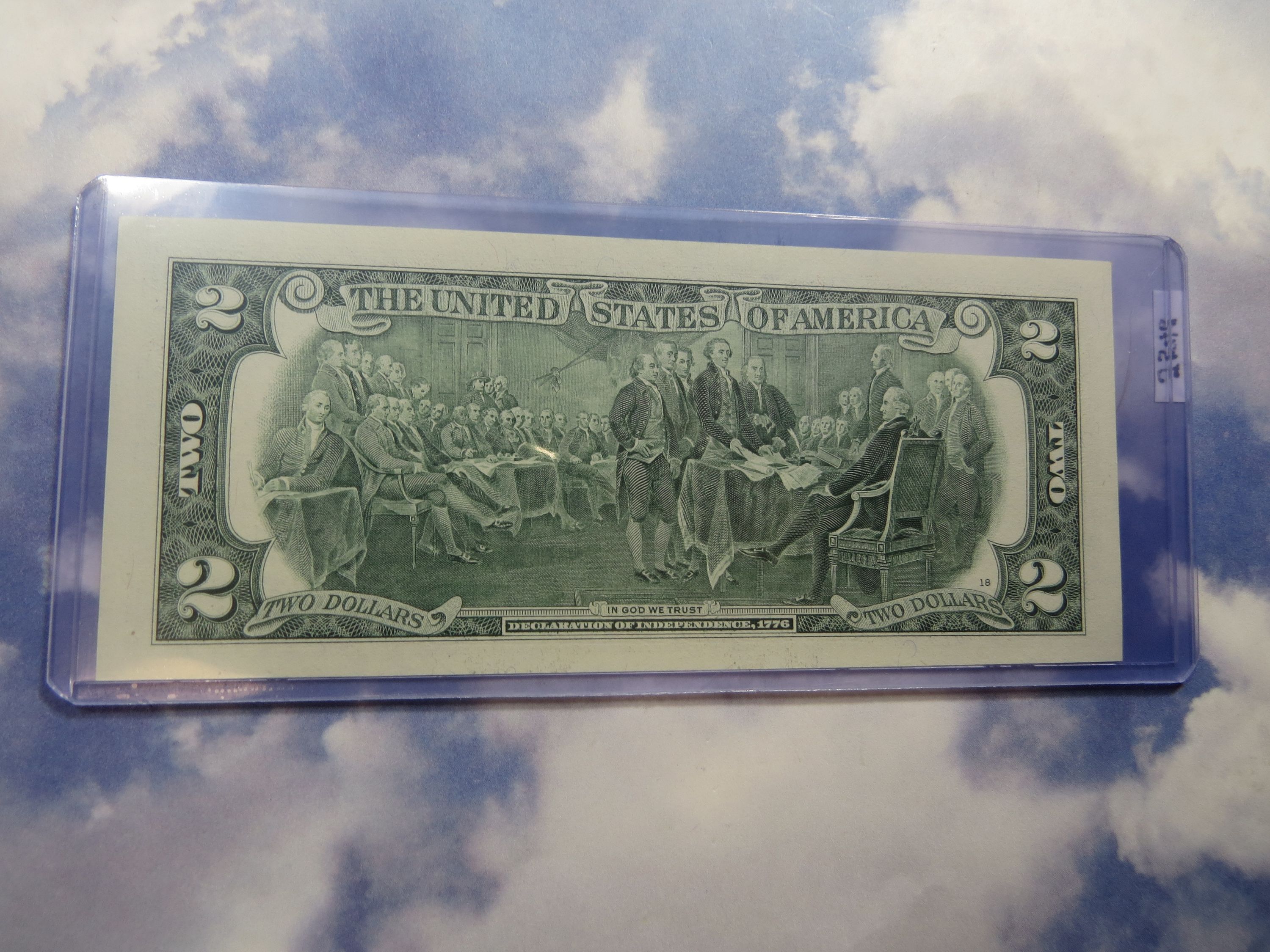 Interesting History about this $2.00 Note. Thomas Jefferson has been given credit for writing most of the Declaration of Independence on July 4, 1776. This Note has Thomas Jefferson's picture on the Note and on the reverse side of the Note is a picture of the signing of the Declaration of Independence! Another interesting point is that next year (2026), will be the 250th Anniversary of the Declaration of Independence. One more thought is the fact that Thomas Jefferson passed away on the 50th Anniversary of the Declaration of Independence (July 4, 1826)!