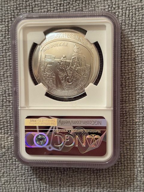 2019-P $1 Apollo 11 50th Anniversary, uncirculated silver dollar.