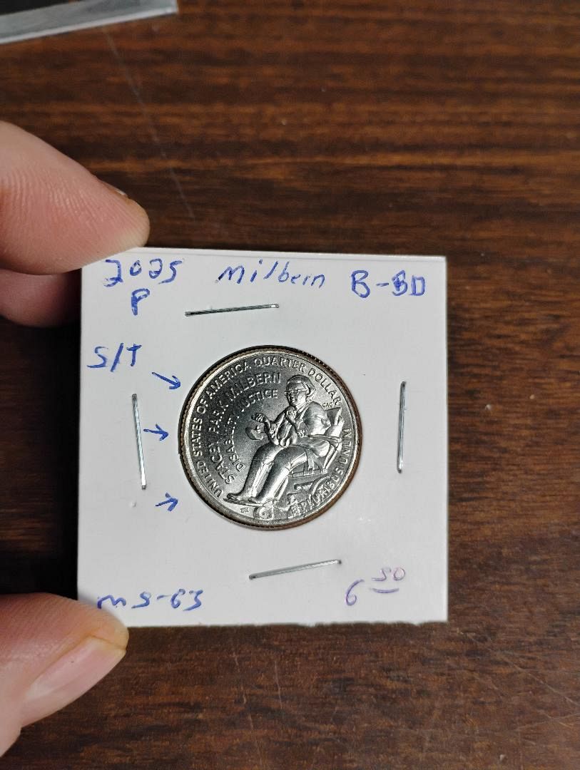 2025-P WASHINGTON QUARTER MILBERN STRUCK THROUGH LEFT SIDE REVERSE MS-63