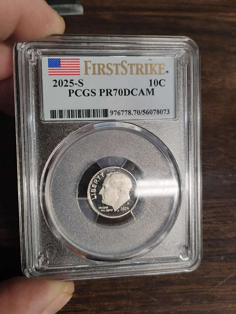 2025-s pcgs first strike label roosevelt dime pr70dcam