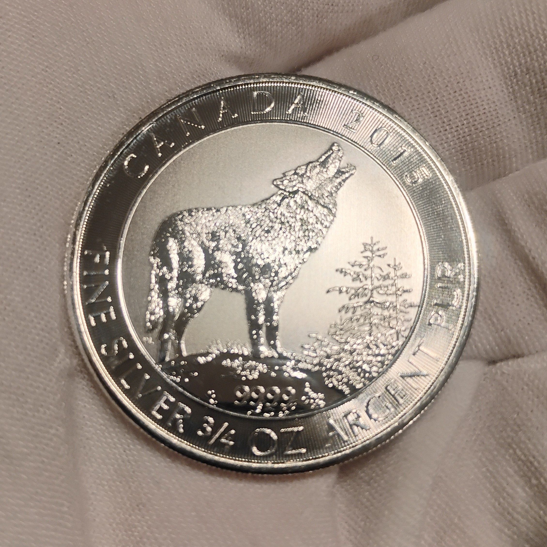 GREY WOLF! Royal Canadian Mint 2015 Canada Grey Wolf 3/4 oz .9999 Pure Silver BU Coin