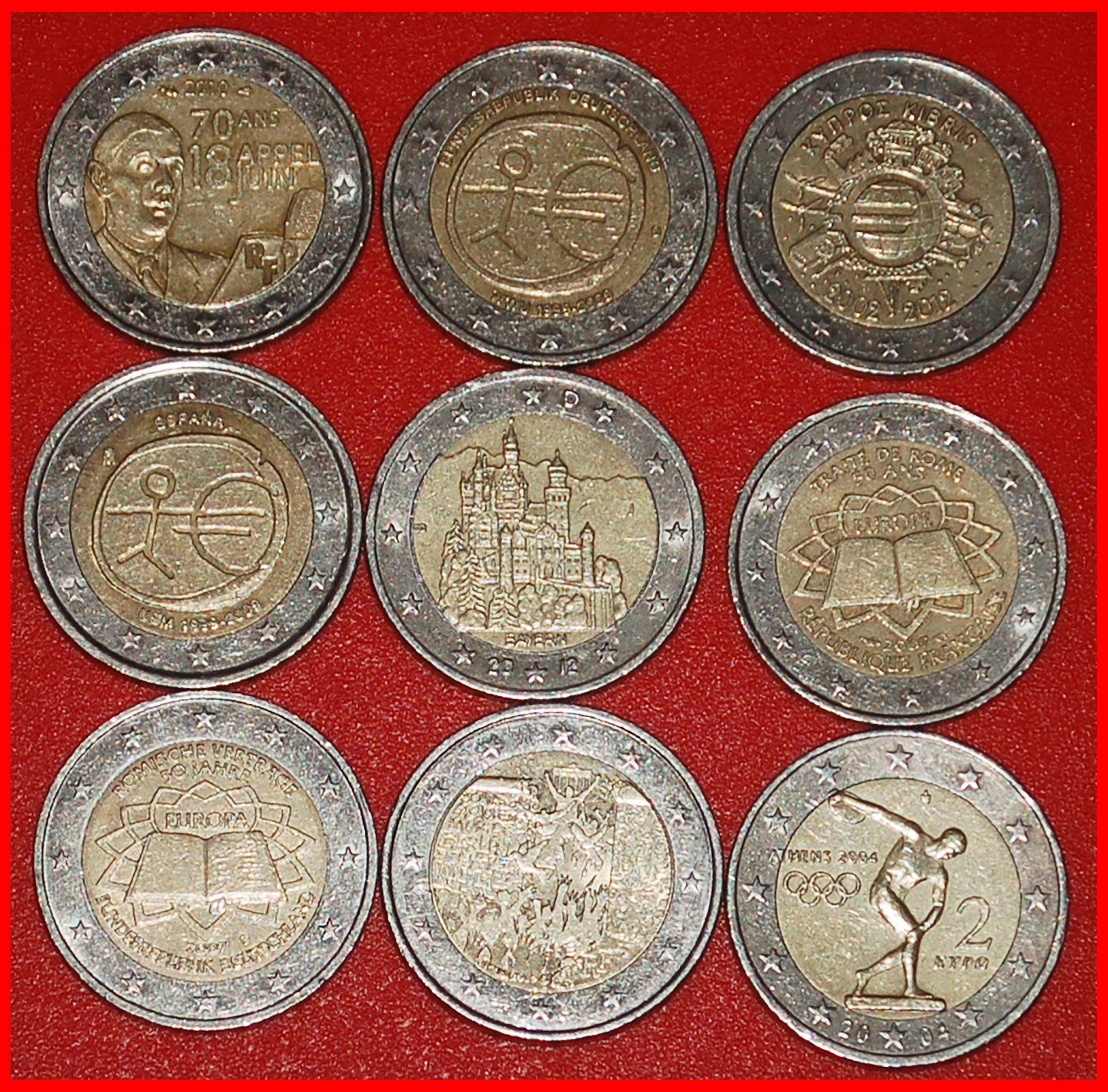 Ⰿ 9 COMMEMORATIVE COINS: EUROPEAN UNION ★ 2 EUROS DIFFERENT TYPES 2004-2014!