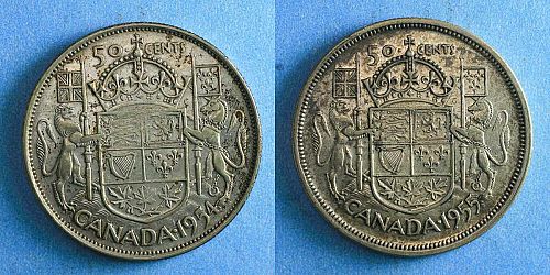 Canadian Silver Half Dollar 50 Cents 1954 1955. Low mintage.