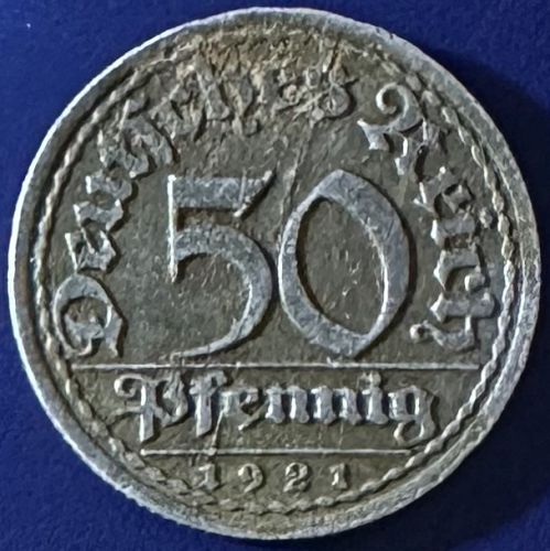 Germany - Weimar - 1921 F (Stuttgart mint) - 50 Pfennig [#1]Germany - Weimar - 1921 F (Stuttgart mint) - 50 Pfennig [#1]