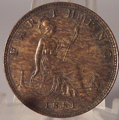 Up for sale, a 1881 Great Britain Farthing that I would judge to be UNCIRCULATED. But check the photos and make your own determination. Krause catalog number 753. This is the "3 Berries in wreath" variety. The coin you see is the one you will receive, no swapped out coins, no photoshop, no stock photos. I have a 7 day money back guarantee and will combine shipments. All grading estimates are just that, estimates. Item is cross posted and subject to prior sale. Thanks for shopping at Grandpaw's Attic.
