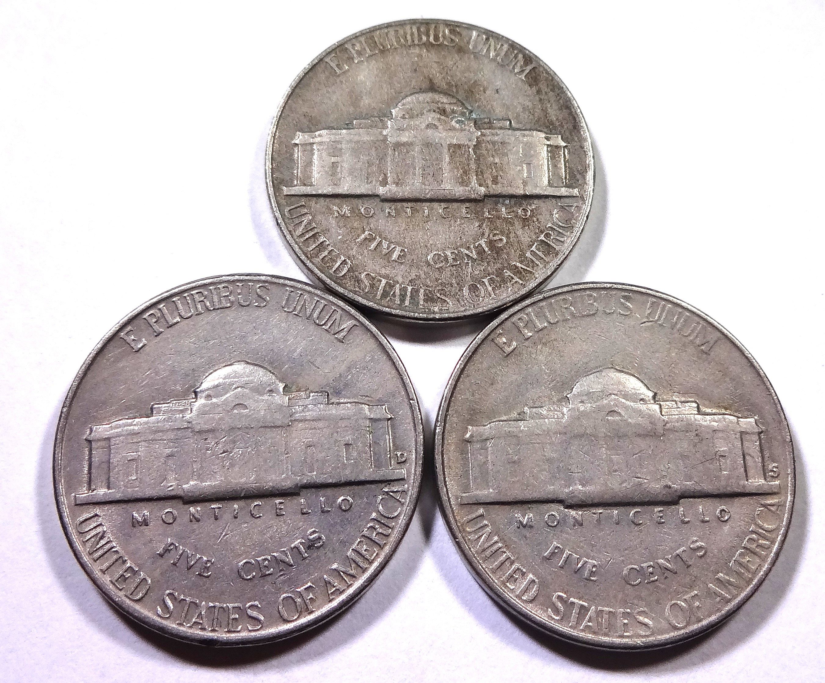 Lot of (3) Jefferson Nickels: 1953-P 1953-D 1953-S