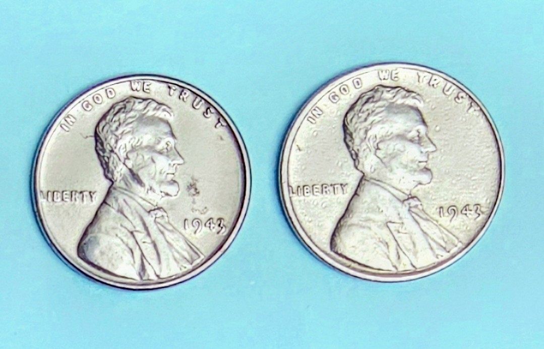 This is a lot of two 1943-P WWII Steel Lincoln Cents in fabulous condition with virtually no signs of possible circulation. This is the only year the penny coins were minted with steel in a thin layer of zinc. In fact, it is the only US issue coin that will stick to a magnet.