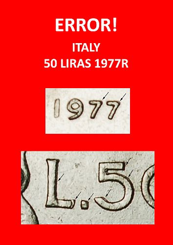 Ⰶ NUDE VULCAN (1954-1989): ITALY ★ 50 LIRAS 1977R! ERROR! MINT LUSTRE!