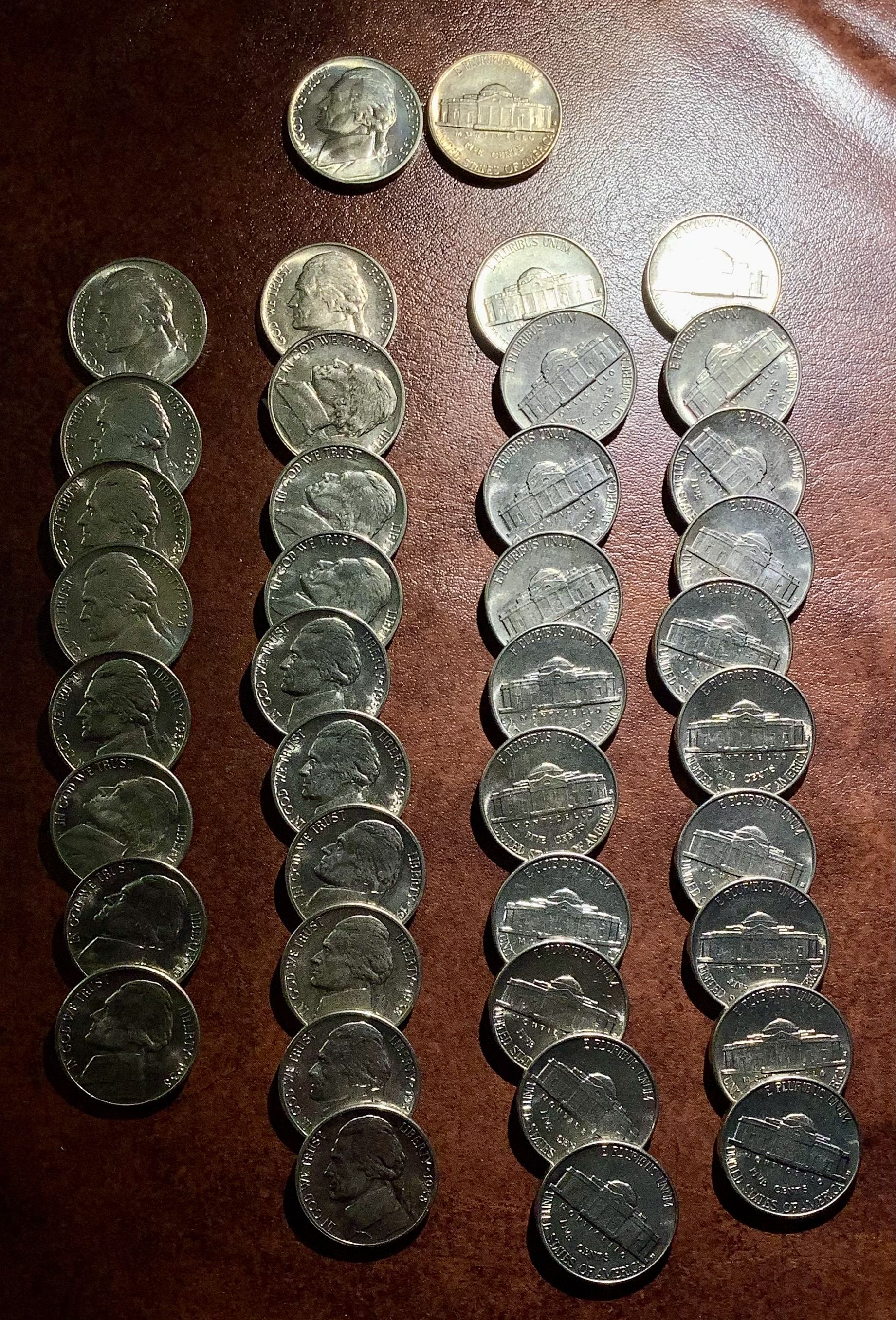 Extremely Rare Original BU Roll of 1938-S Jefferson Nickels (40 coins).