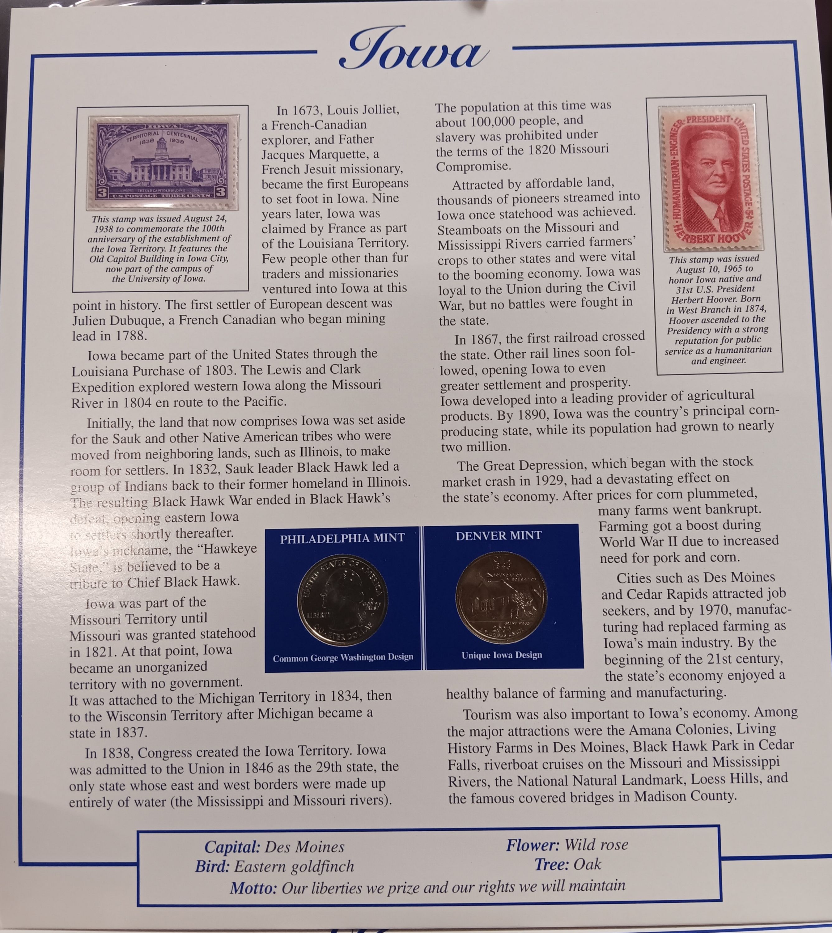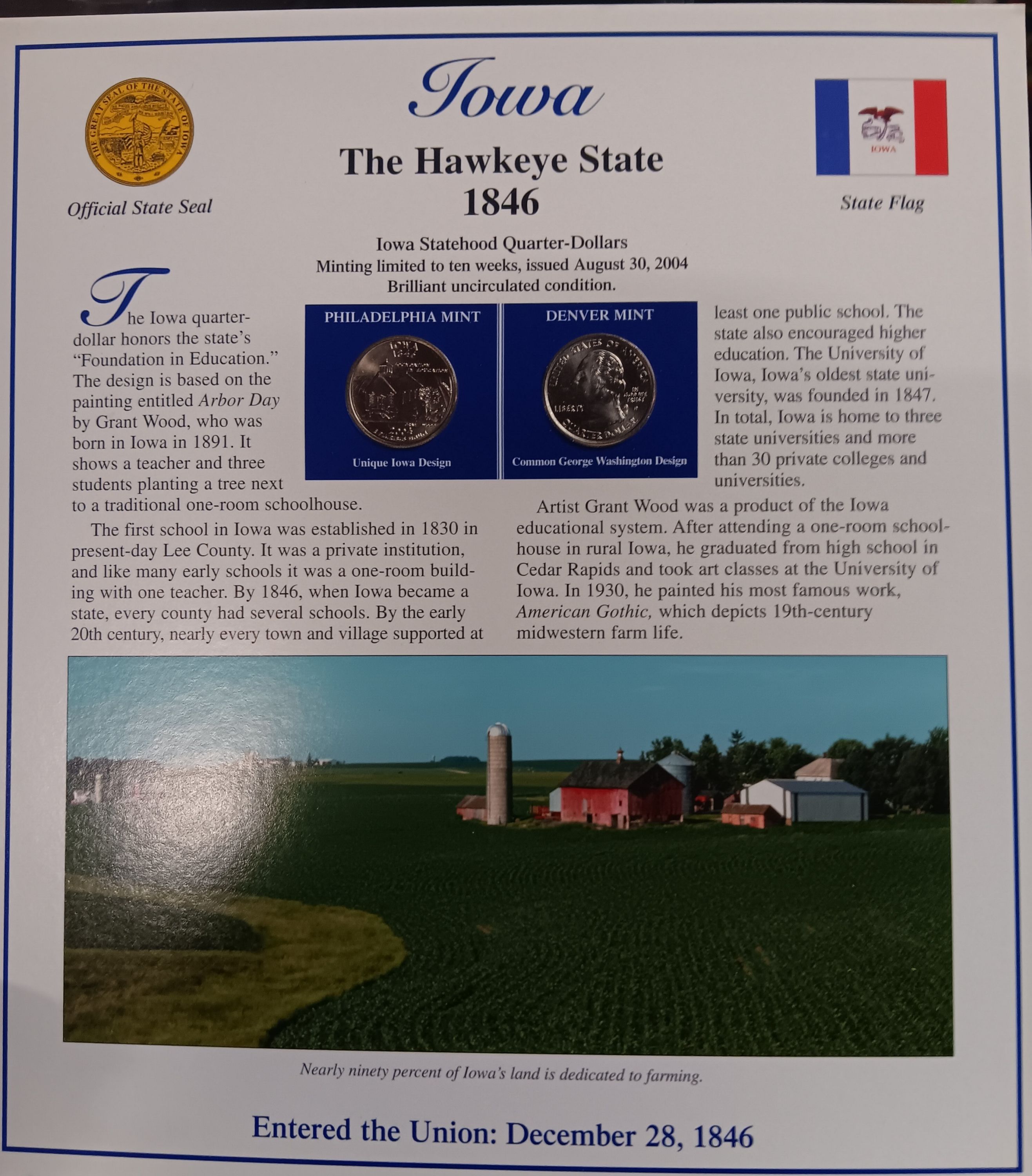 Postal Commemorative Iowa 2004 P & D & StampPostal Commemorative Iowa 2004 P & D & Stamp