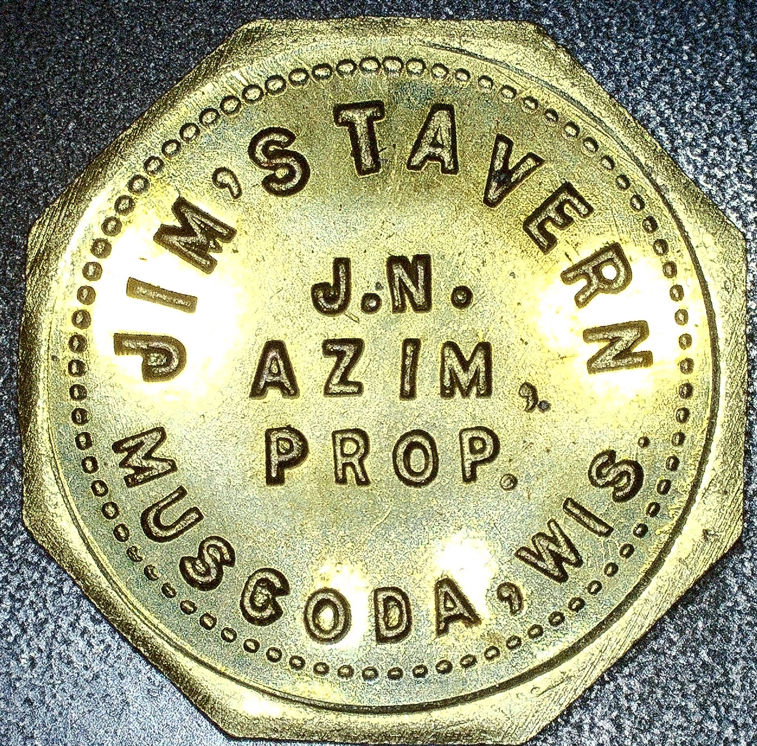Vintage Jim's Tavern Owner J.N. Azim Muscoda, Wis G/F 5 Cents Trade