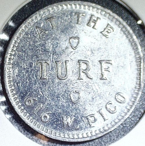 Vintage Los Angeles, CA At The Turf G/F 2 1/2¢ In Trade Token 18mmVintage Los Angeles, CA At The Turf G/F 2 1/2¢ In Trade Token 18mm