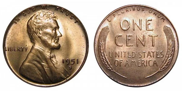1951 S Lincoln Wheat Cent Penny