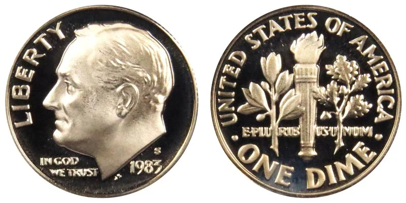 1983 S Roosevelt Dimes were struck only as Proof coins.
